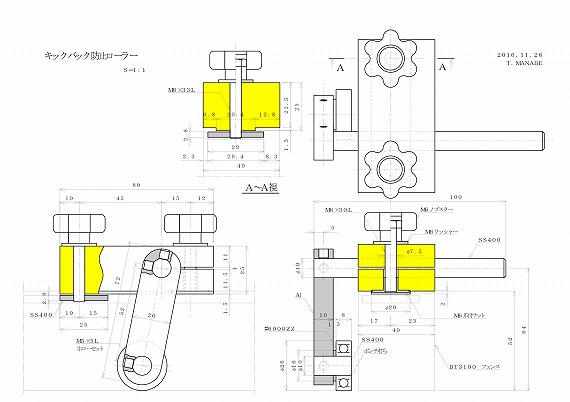 キックバック防止ローラー