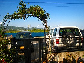 夕方アーチの全体像が浮かび上がると「おぉ」「けっこうデカイ」