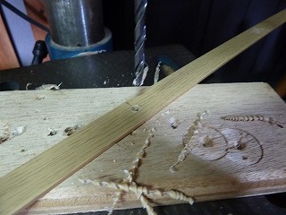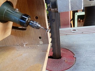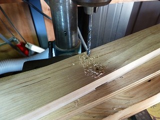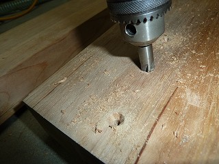 | 23.傾いた面は取り付け時に水平となるのだ。 | 24.アリ溝接続部をコーススレッドで締め付けるための、4mm穴あけ。 | |