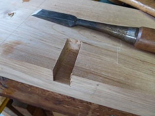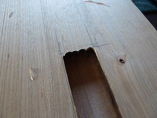 | 27.2か所の溝加工が完了。 | 28.端のR部はノミで直角に加工した。 | |