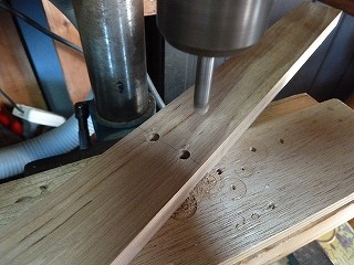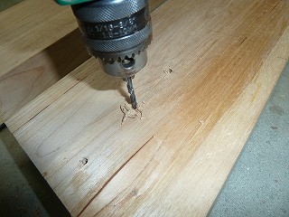 | 33.メインの梁材にもコーススレッド用の3.8mm穴加工。 | 34.ザグリ加工。 | |