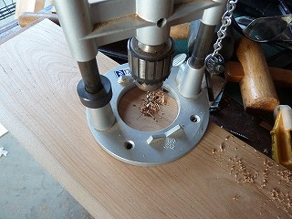 | 25.ザグリ加工。 | 26.梁部材に幅15mm深さ15mmの溝加工。ビットは15mmのストレートだ。 | |