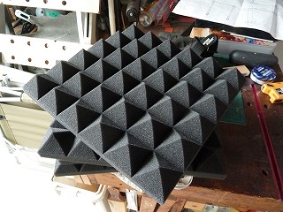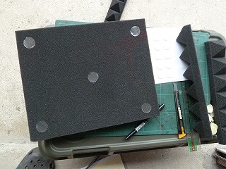 | 51.やはりエンジン音の反響が気になるので、ダメもとで高密度ウレタンフォームの吸音材を貼ってみた。 | 52.Amazonで買ったもので両面テープで張り付けるのです。 | |