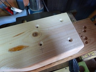 14.Drilling to attach to the tractor. The Forstner bit is 1/2 inch. |