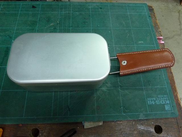 メスティンのハンドルカバーは100均でも売られているが、本革で個性的なものにしたいと思い自作してみた。 | ||