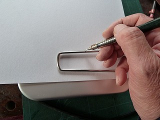 4.ハンドルの内周・外周を鉛筆でなぞって型を写し取る。 |