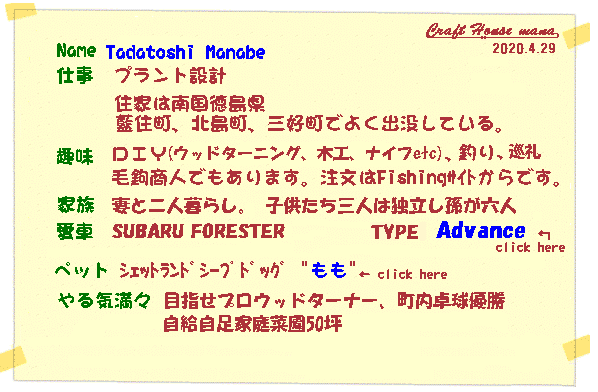 |  | 2003/05/11 | ウッドターニングのページを開設 | |