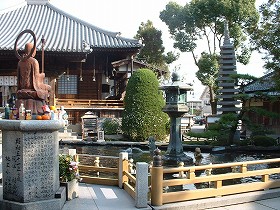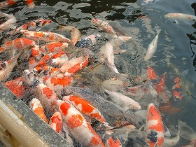 鯉が元気.霊山寺の境内には大きな池があり、鯉と鴨がゆったりと泳いでいる。子供たちも歓ぶお寺さんです。 |