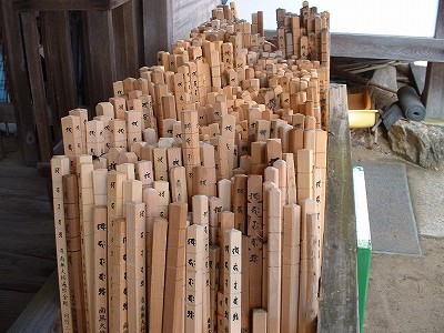 金剛杖大窪時で、八十八箇所を共にした金剛杖を奉納する習慣がある。納経所の前では沢山の杖が勤めを終え、体を休めている。 |