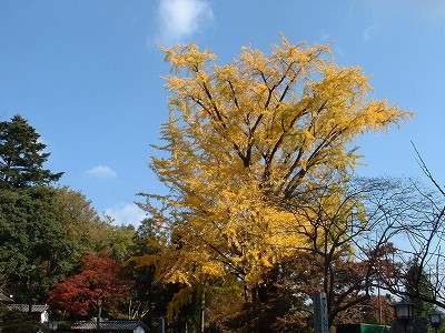 イチョウ.境内には大きなイチョウ、モミジ、高野槇がお遍路さんを迎えてくれる。 |
