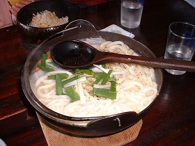 八十八庵の1.門前の前には多くのみやげ物店が並んでいるが、その中でも八十八庵は味で有名だ。うどんは味噌煮込みが最高。白味噌と季節の野菜がベストマッチだ。 |