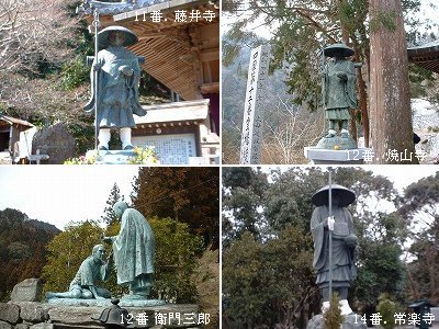 険しい場所に行くほど力強く感じるんのは私だけだろうか。また、焼山寺の途中にある衛門三郎(えもんさぶろう)の象は88箇所の発端らしい。四国を巡礼中の大師が、愛媛県松山市の郊外の大きな屋敷に托鉢に訪れた。そこの主人の衛門三郎は強欲で、何度も訪れる乞食僧(大師)を追い払い、最後には大師が持っていた鉄鉢を8つに割ってしまう。その後、どういう訳か三郎の子供8人が次々と亡くなった。そこで、三郎は托鉢に訪れた人が弘法大師だったと気づき、今までの自分の行いを悔い大師を求めて遍路の旅にでたが、簡単には会えなかった。20数回目に順番にまわるのをやめ、逆にまわりはじめたが、心身とも疲れ果て12番の焼山寺で倒れてしまった。意識が遠のいていくときに、大師が現れ罪を許してもらった。最後の望みとして、「今度、生まれ変わるときは、領主になりたい」と願った。そこで、大師から衛門三郎と書いた小石を授けられ、それを握ったまま死んでしまう。その後、伊予の領主に男の子が産まれ手から衛門三郎と書いた小石が出てきた。この物語から逆打ちの習慣が出来たと云われています。