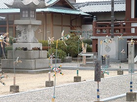 55番.南光坊(なんこうぼう)。「えっ、何」って思いますね。ペットボトルの風車が所狭しと立てられて勢いよく廻っていました。鳩よけかなぁ・・・。54番から約4km。なむ だいつうり しようぶつ。 |