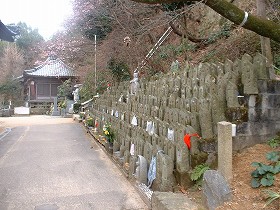 58番.仙遊寺(せんゆうじ)。境内に入り口では千体地蔵が出迎えてくれる。迫力満点だ。57番から約4km。おんばざら たらま きりく。 |
