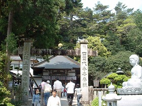 1番.霊山寺(りょうぜんじ)。ここまでは自宅から車で10分足らず。駐車場の奥に車を置かせてもらい、お参りを済ませてから山門前で1400kmの第一歩を踏み出した。大型連休の中日とあって境内はお遍路さんでごった返していた。 |