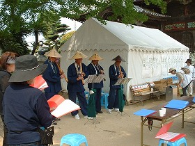 5番.地蔵寺(じぞうじ)。4番から2km。ここでコーヒーとお菓子のお接待を頂いた。疲れた時にはほんとあり難いですね。境内に入ると尺八で懐かしい童謡を演奏していた。足がパンパンになり、歩き遍路初日はここで終了とした。娘に迎えに来てもらい一番で車を回収し自宅に帰ります。いや〜、やっぱり歩きはいい。 |